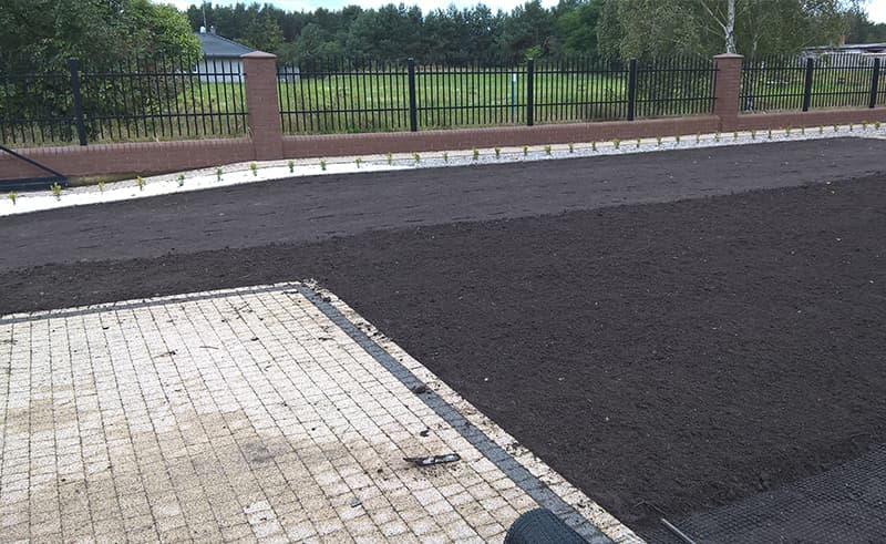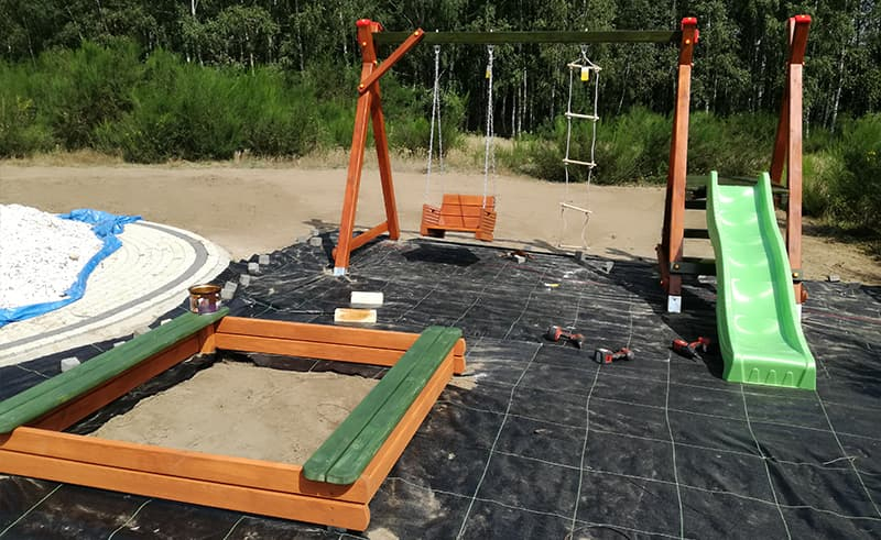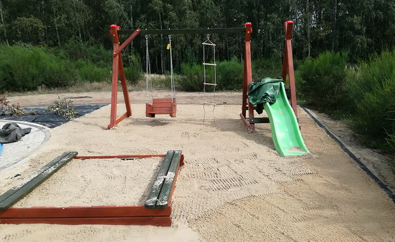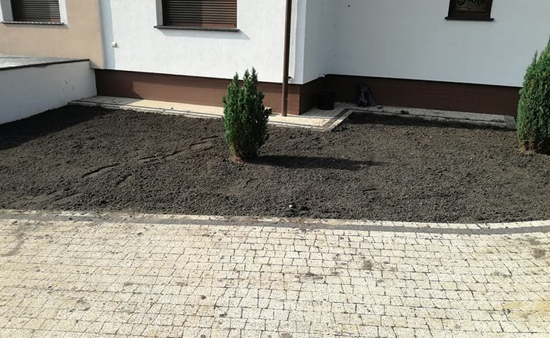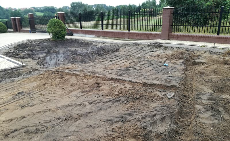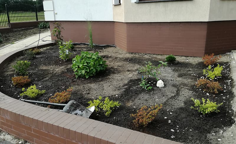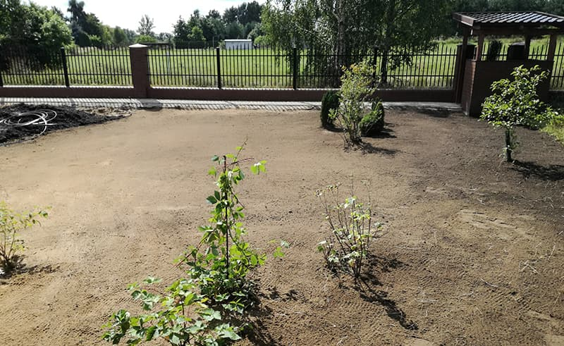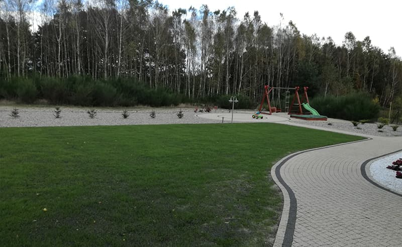 Budowa ogrodu w Lubiczu wg projektu inwestora. Skromnie, prosto ale ładnie i estetycznie. Plac zabaw dla dzieci. Woda pobierana z własnej studni kręgowej. Sterownie nawadniania pilotem.