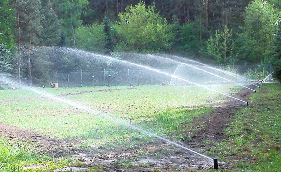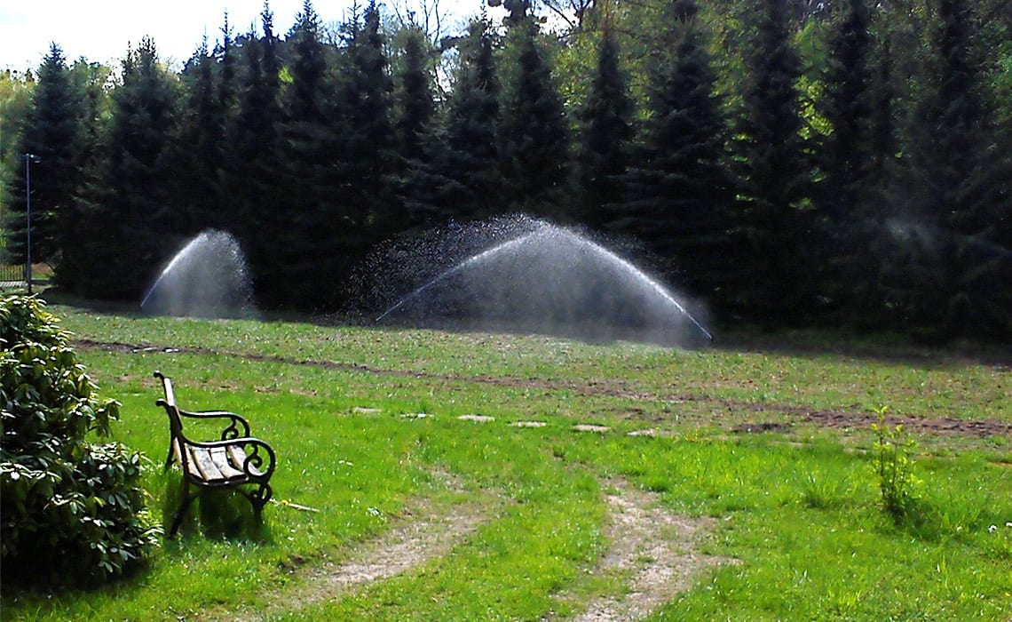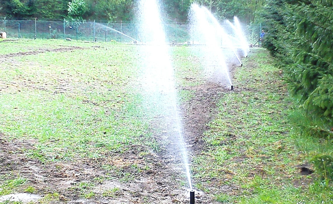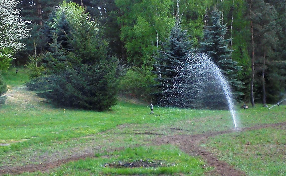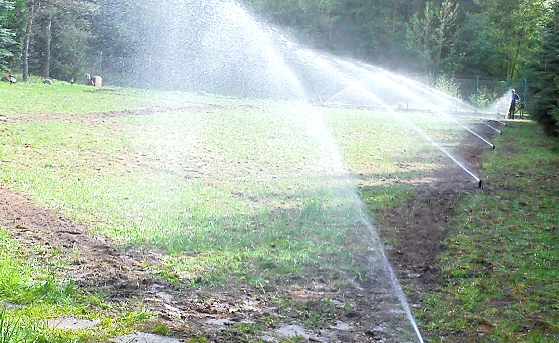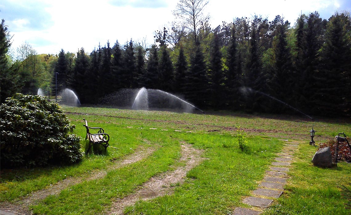 Rozbudowa nawadniania w prywatnym parku przy dworku w Młyńcu. Woda pobierana jest ze stawu na terenie ogrodu.
