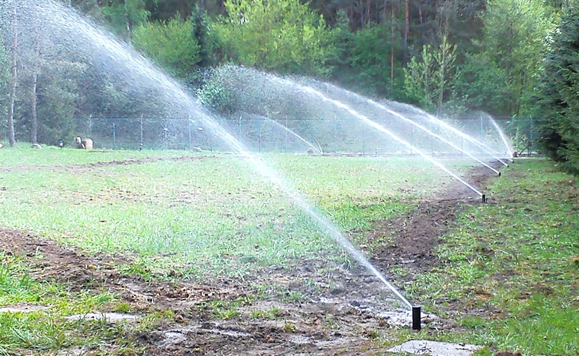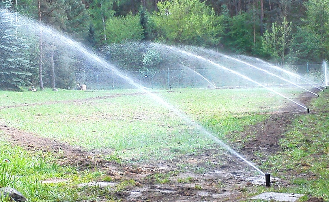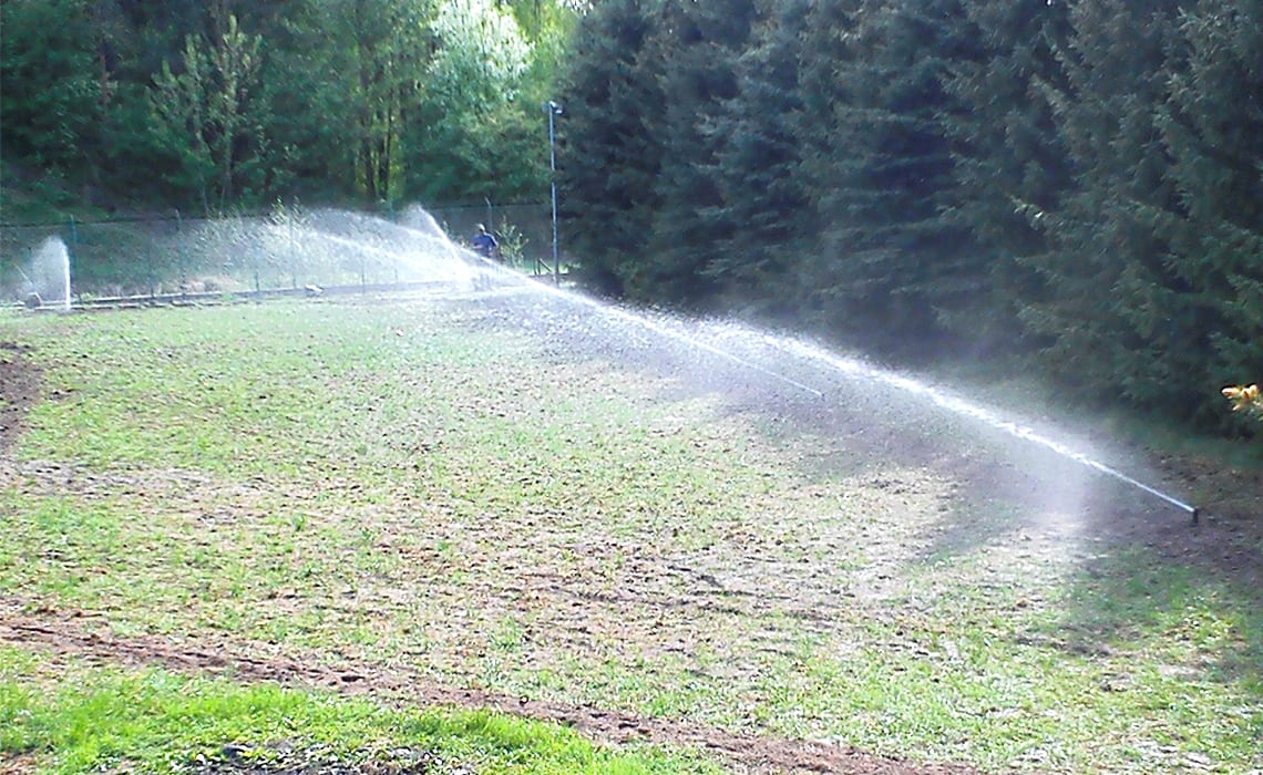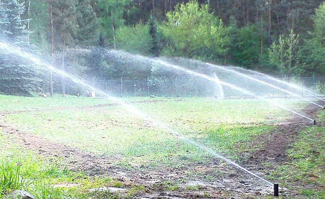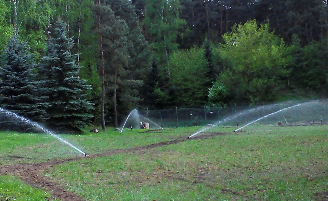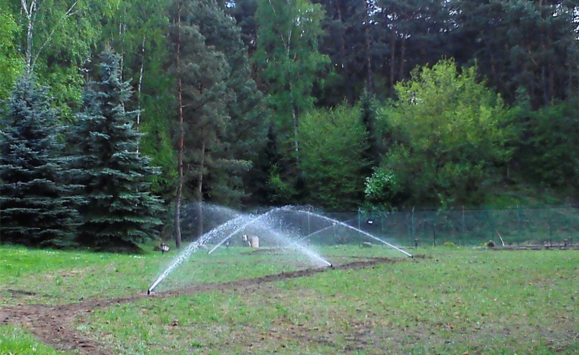 Rozbudowa nawadniania w prywatnym parku przy dworku w Młyńcu. Woda pobierana jest ze stawu na terenie ogrodu.