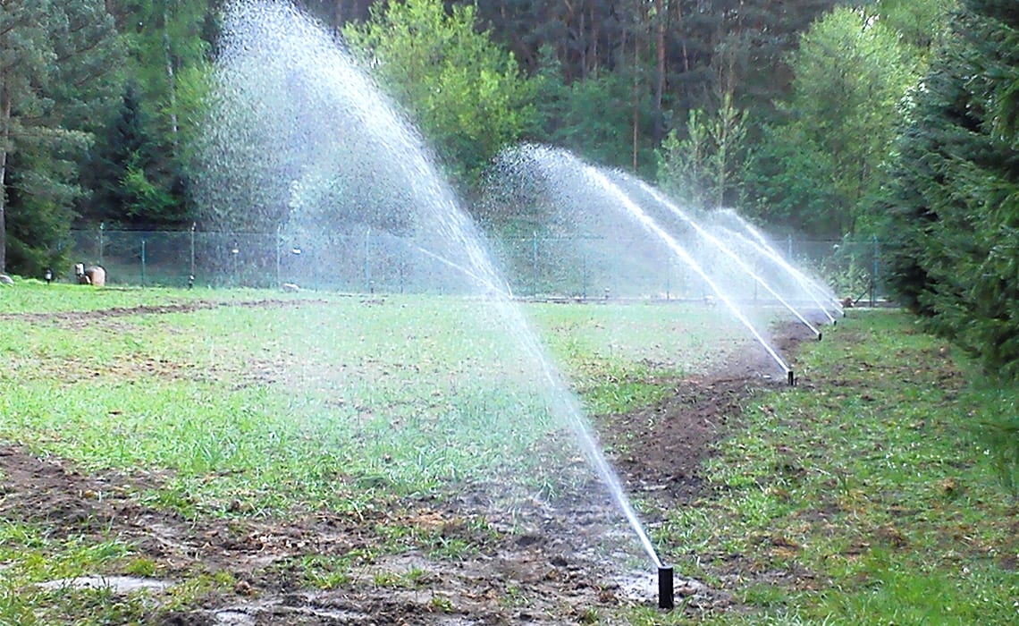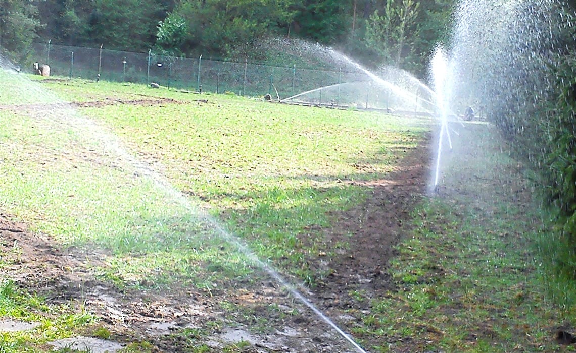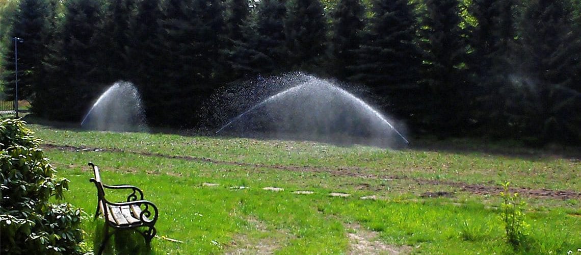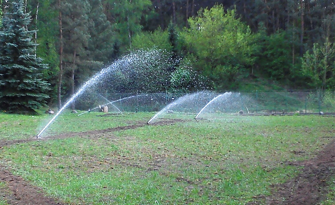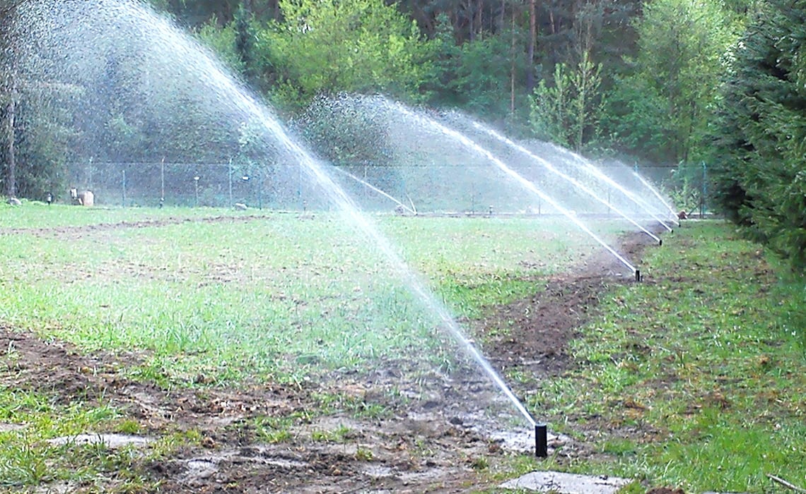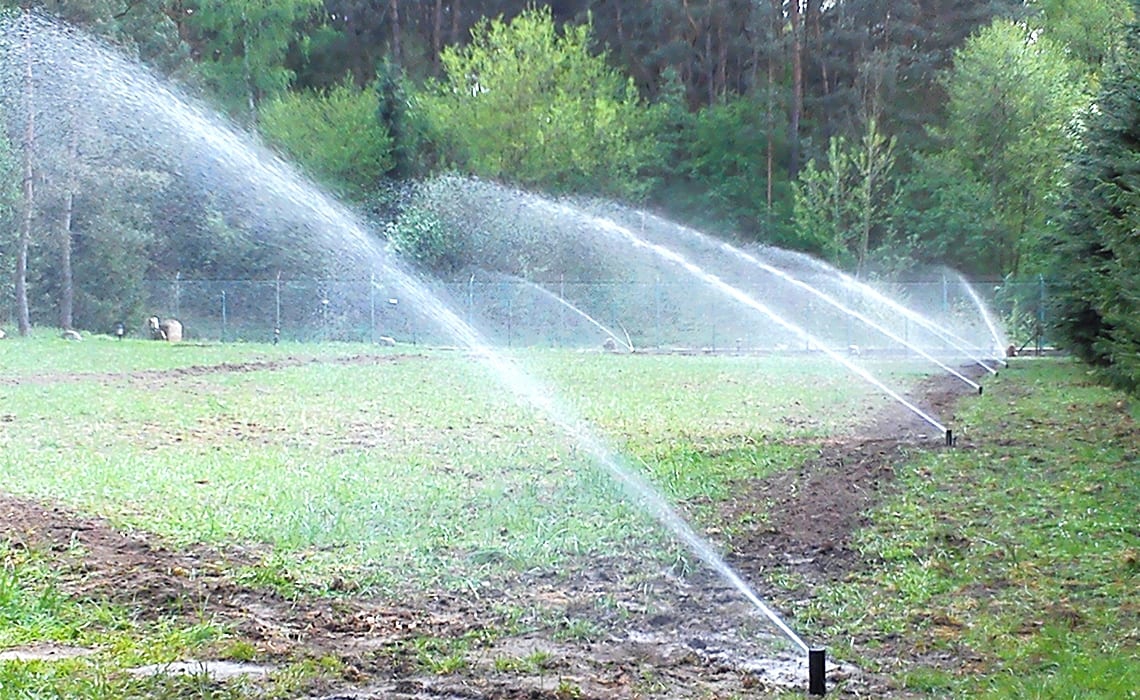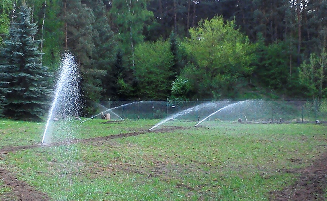 Rozbudowa nawadniania w prywatnym parku przy dworku w Młyńcu. Woda pobierana jest ze stawu na terenie ogrodu.