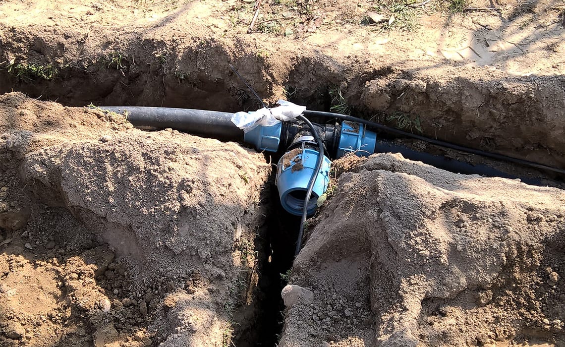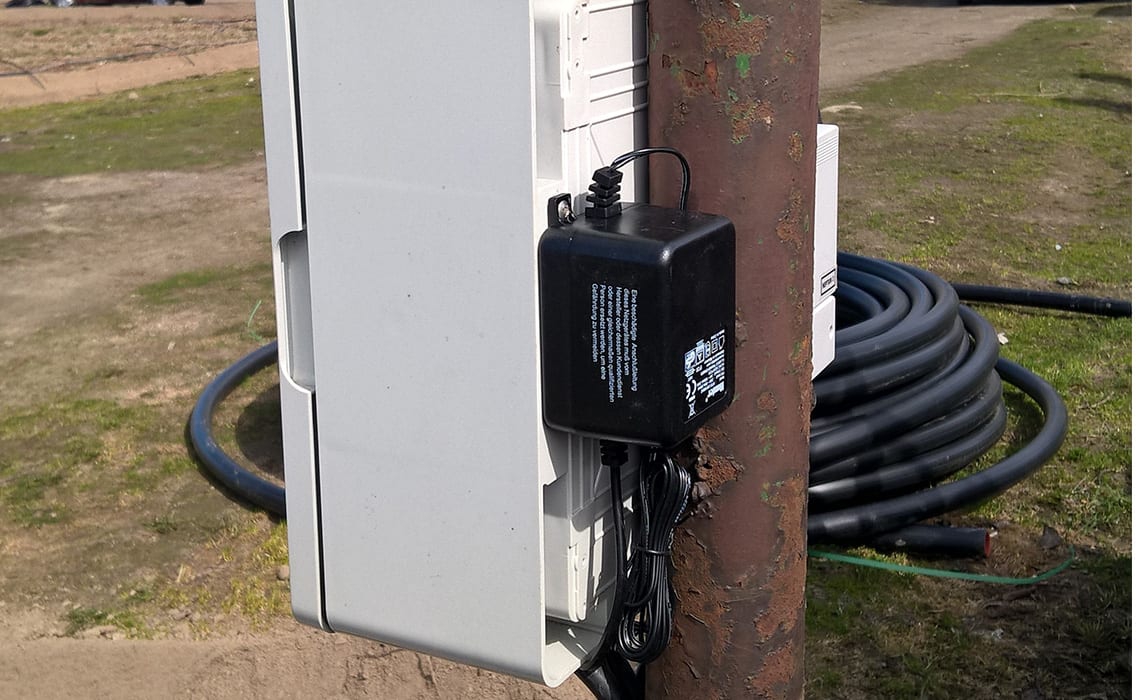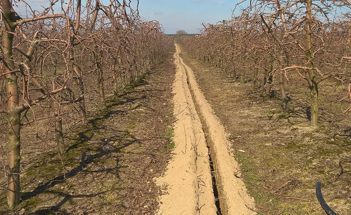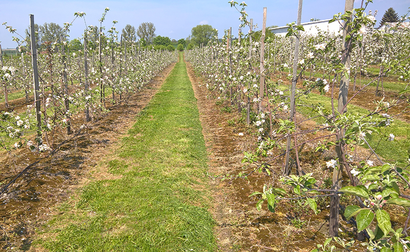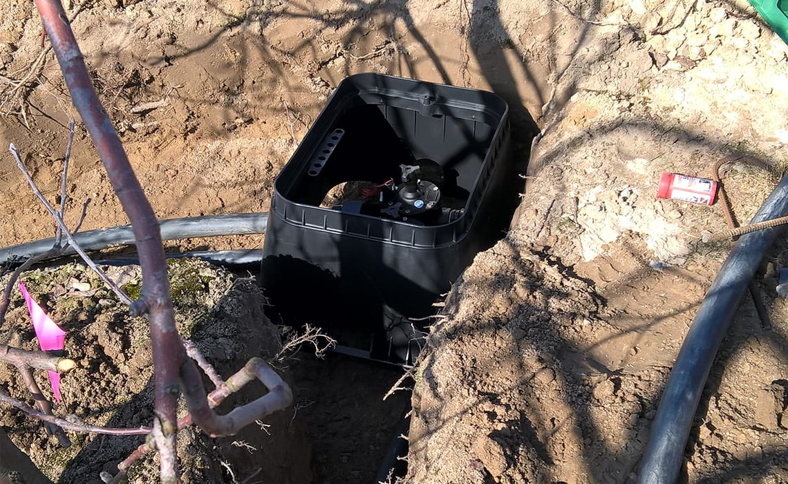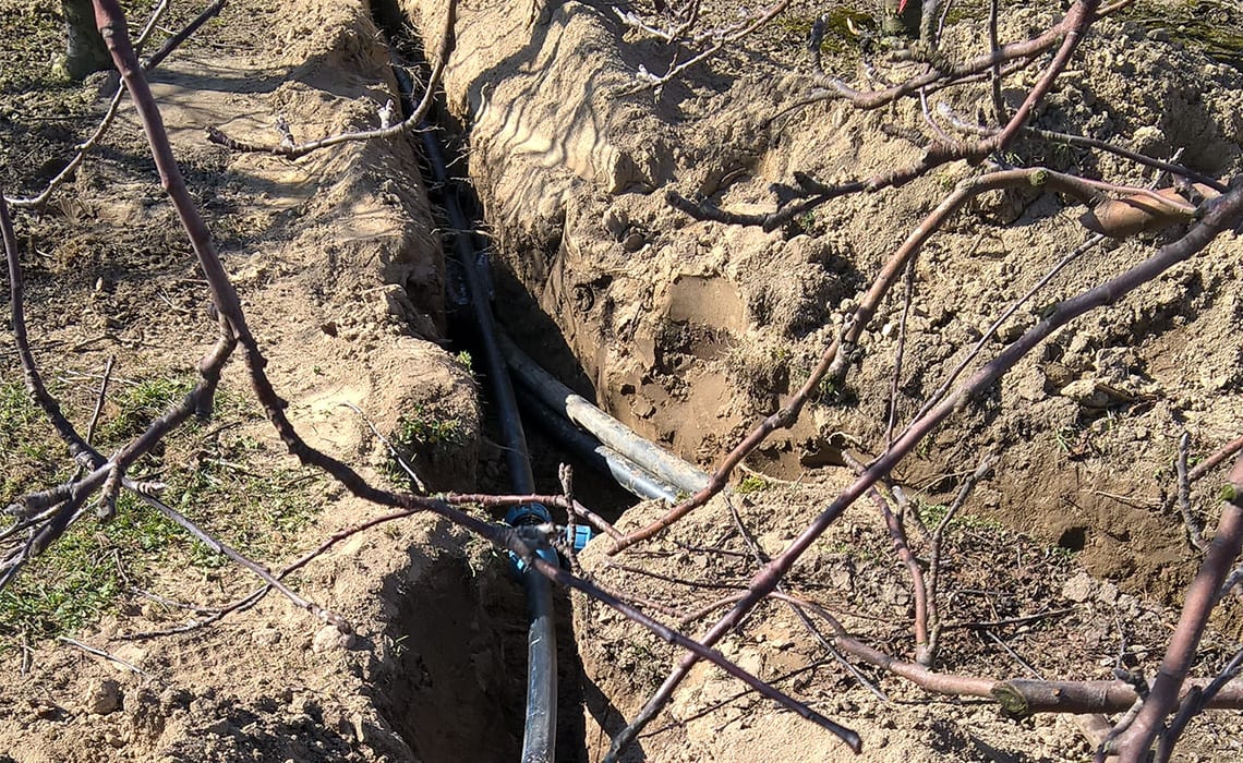 Sad wielogatunkowy w Niewierzu koło Brodnicy. Powierzchnia 17,5 ha. Duży sad a małe źródło wody – 9 m3/h. Wymusiło podzielenie całej powierzchni na 20 sekcji. Do tego zastosowano dwa filtry żwirowe T-620 płukane automatycznie co daje dodatkowo 2 sekcje. Zainstalowano sterownik Neptun co pozwoliło zaoszczędzić około 40% na automatyce. Sterownik ten pozwala klientowi z dowolnego miejsca na Ziemi sprawdzać działanie systemu, zarządzać nim oraz otrzymywać wiele cennych informacji jak np. ilość opadu bardzo ważna do prawidłowej ochrony sadu. Ponadto zainstalowano dozownik nawozu Dosatron dzięki czemu sadownik ma pełną kontrolę nad nawożeniem.