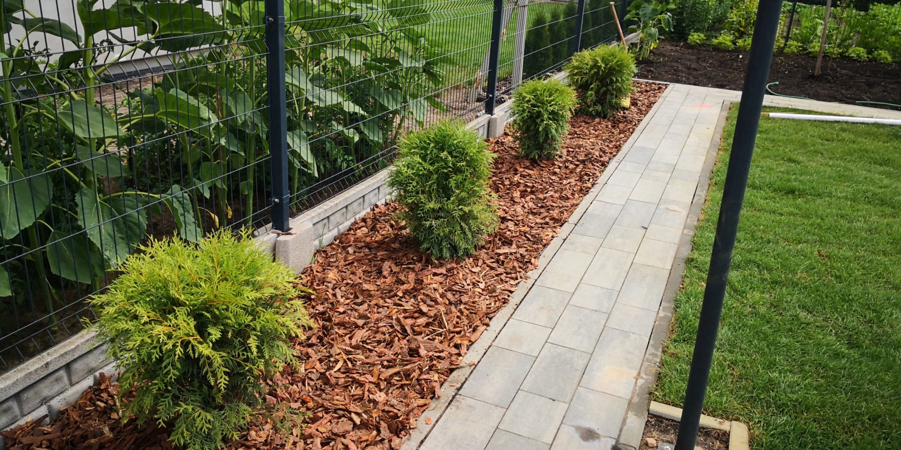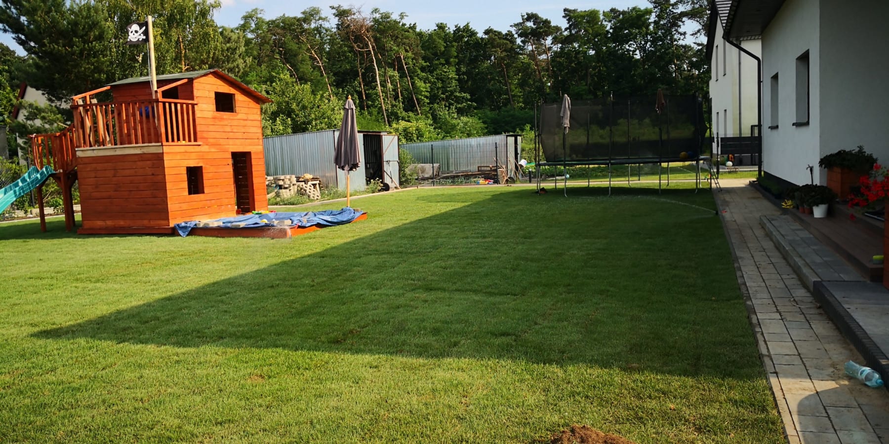 Prosty ogród w Wieńcu. Minimum roślin. Podlewanie trawnika, warzyw w gruncie i tuneliku. Własne ujęcie wody, pompa głębinowa z falownikiem. Sterownik Rain Bird z komunikacją wi-fi.