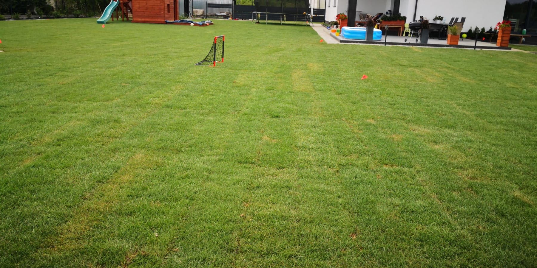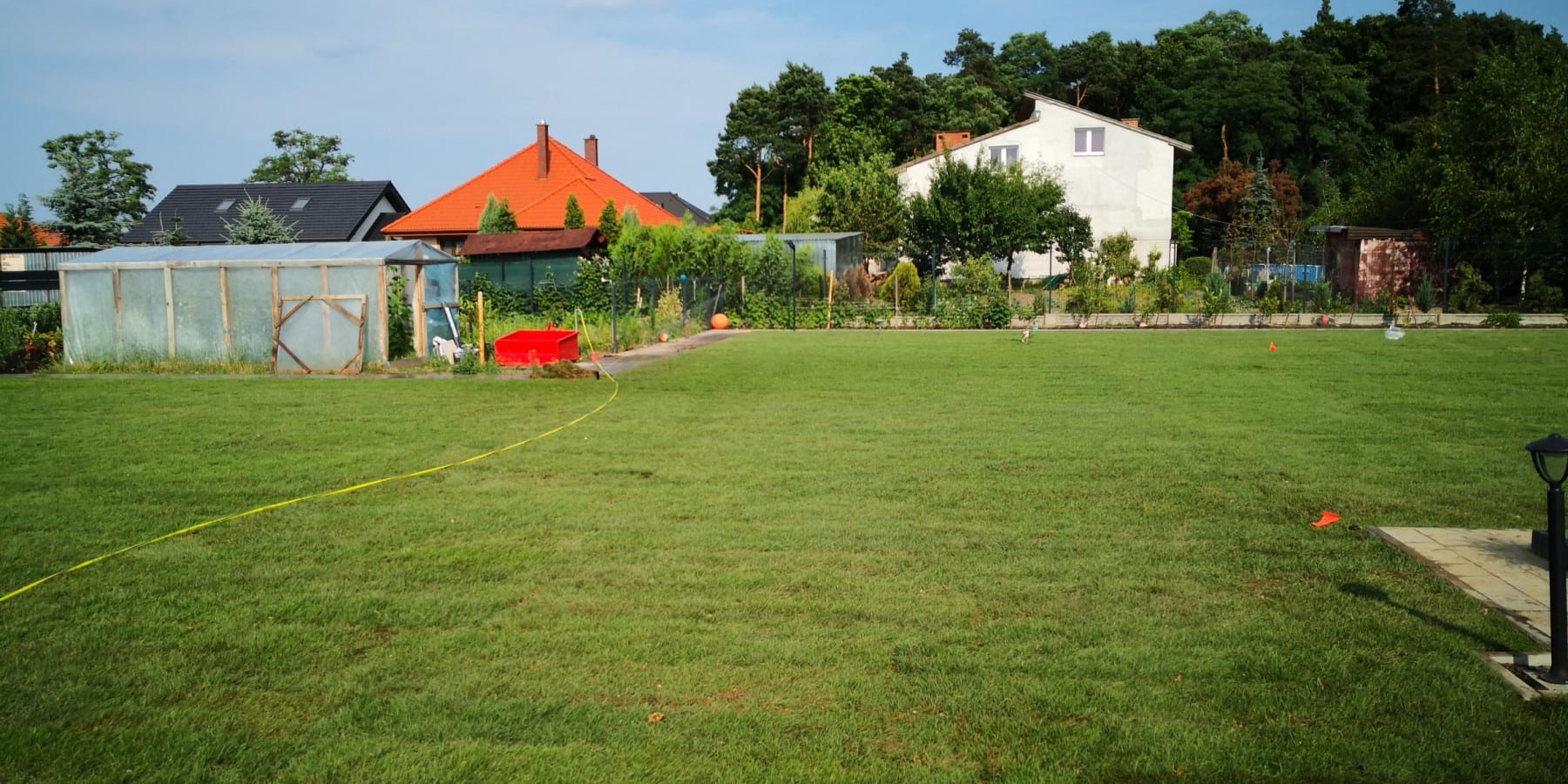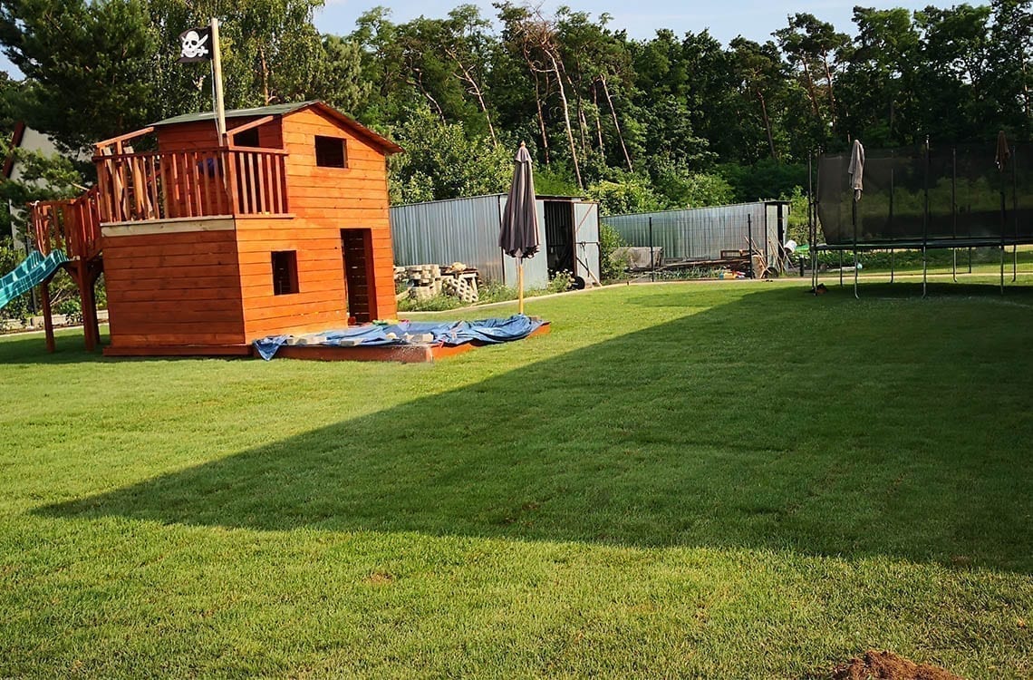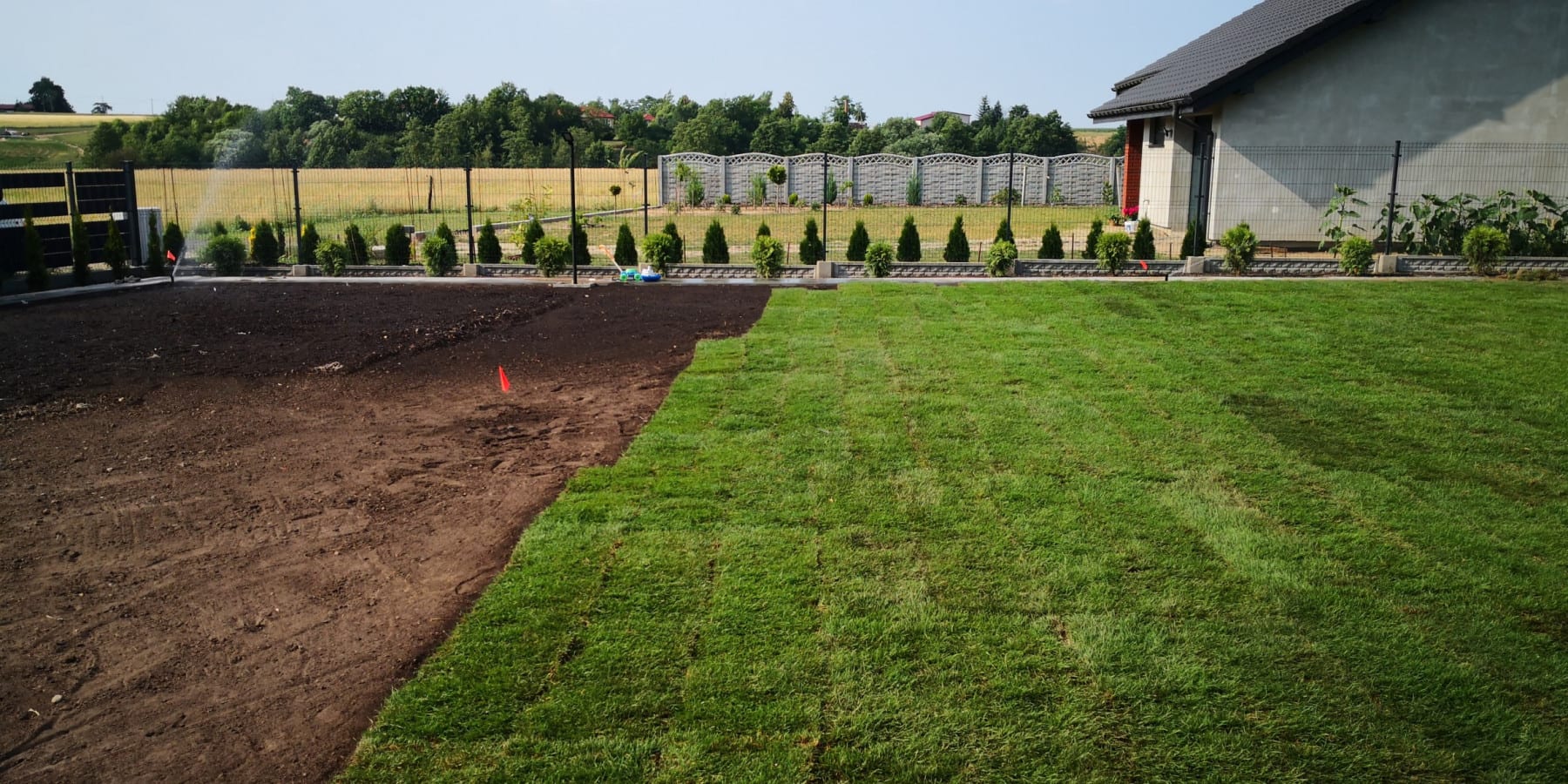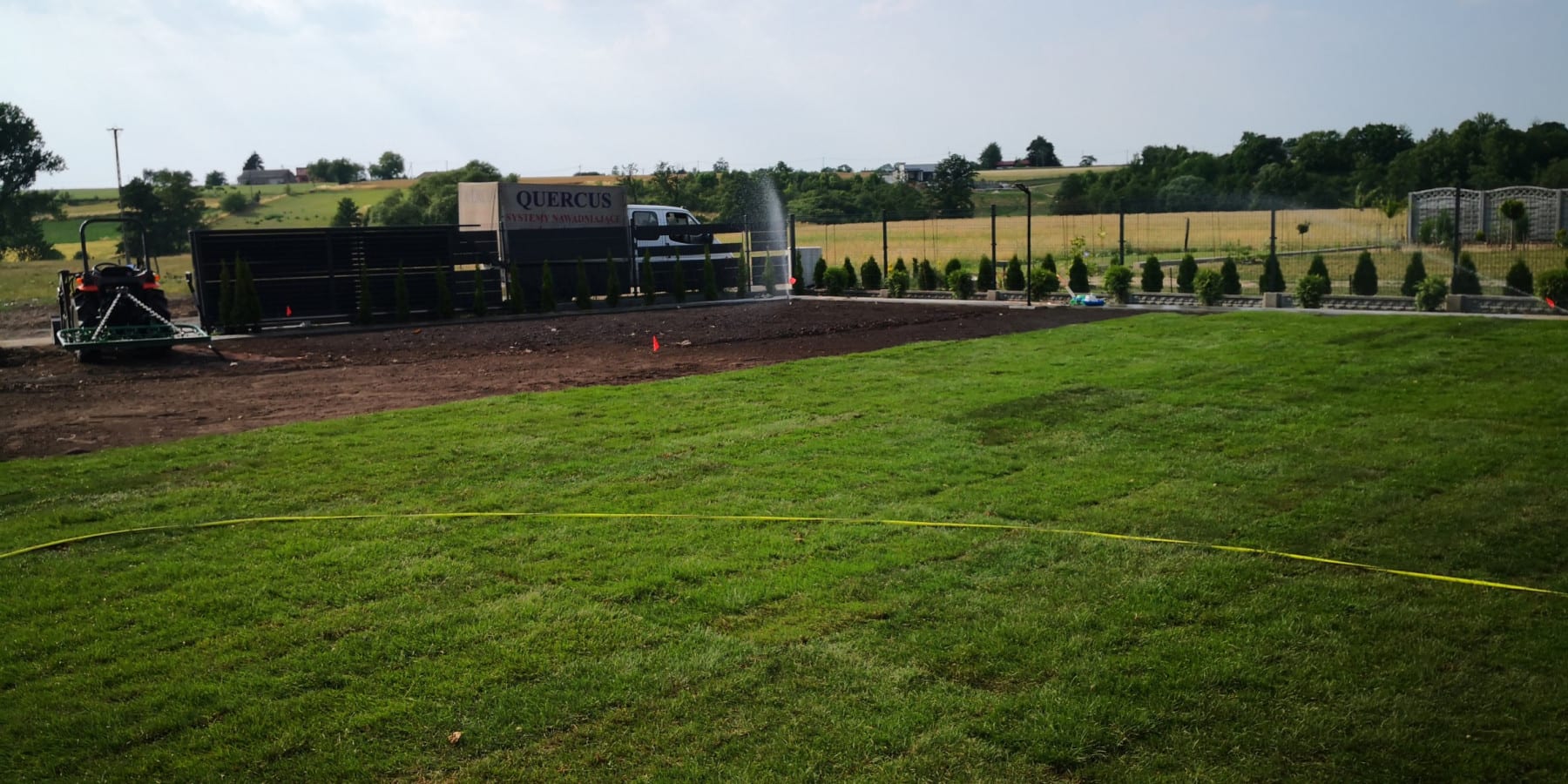 Darń rozwijaliśmy w czasie największych upałów jakie były w czerwcu 2019 r (33 st. C). Tylko dzięki sprawnej organizacji i dobremu zaopatrzeniu w wodę, udało się wszystko dobrze ułożyć.